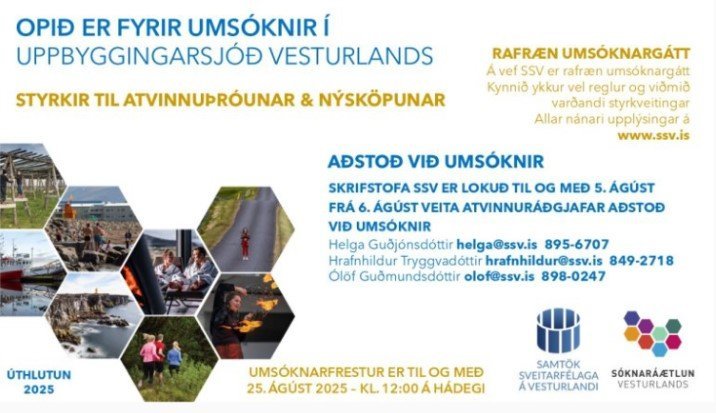 Uppbyggingarsjóður Vesturlands - opið fyrir umsóknir